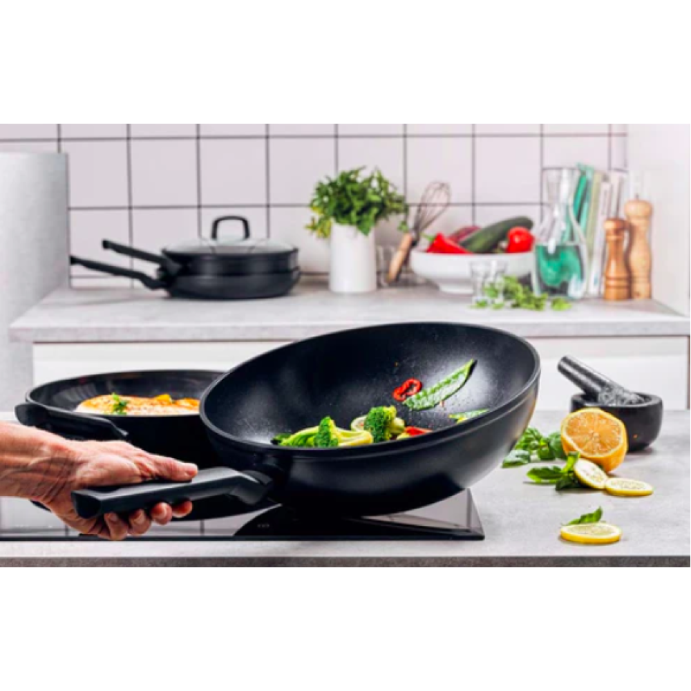 Met de BK Easy Induction pannen bak je gezond op alle warmtebronnen. Dankzij de PFAS-vrije keramische coating met anti-aanbakeigenschappen kun je ingrediënten korter en heter bakken, met behoud van hun vitaminen en structuur. De coating is milieuvriendelijk geproduceerd en krasbestendig, de grepen zijn stevig en worden minder snel heet. De BK Easy Induction pan is uitermate geschikt voor inductie. Het aluminium van de pan warmt snel en gelijkmatig op. Daarbij vervormt de bodem niet én is de pan geschikt voor de oven (tot 160 °C).