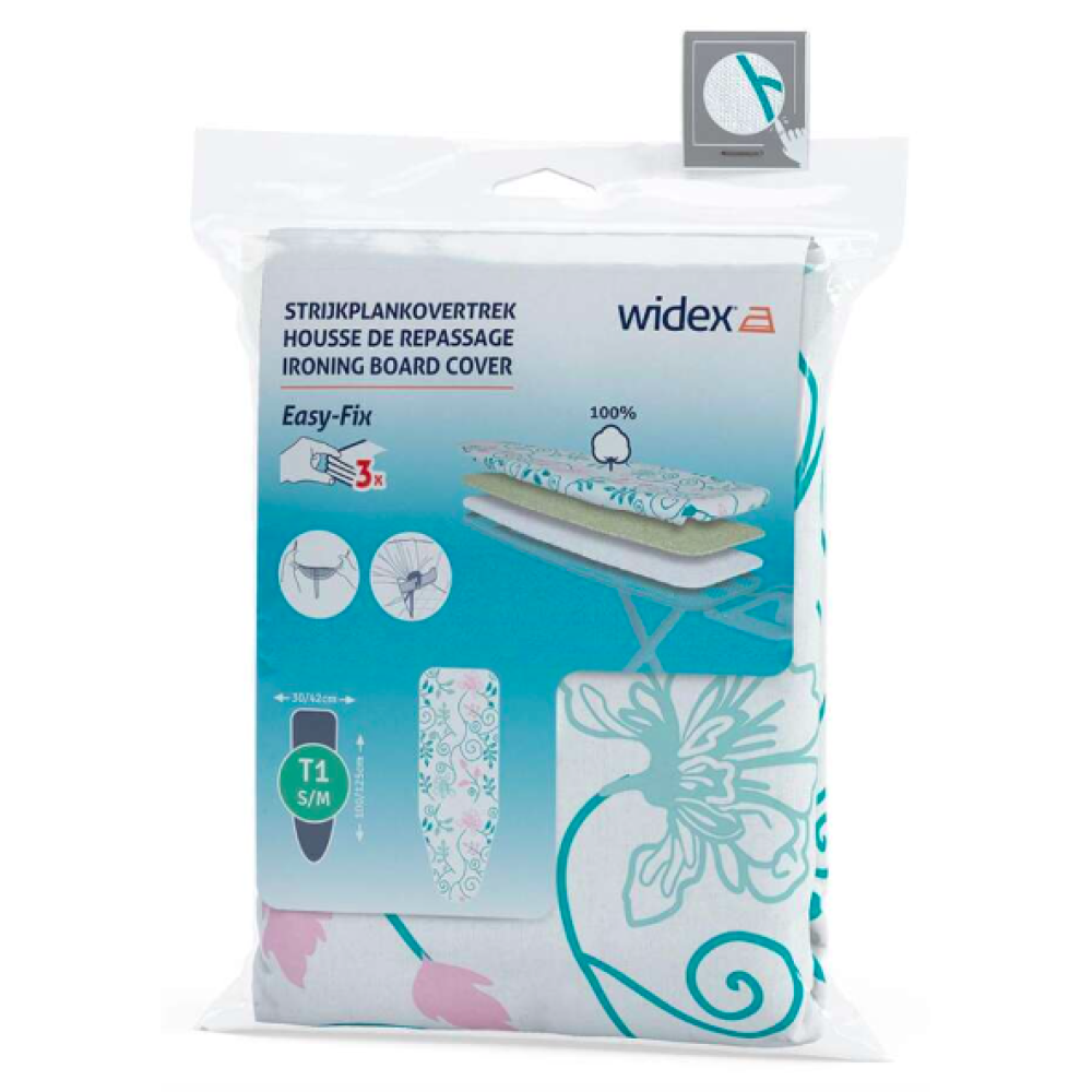Door de elastieke afwerking kan de Easy-Fix makkelijk om de strijkplank worden gedaan. Daarna kan met het koord en sluitclip de overtrek strak aangetrokken worden.