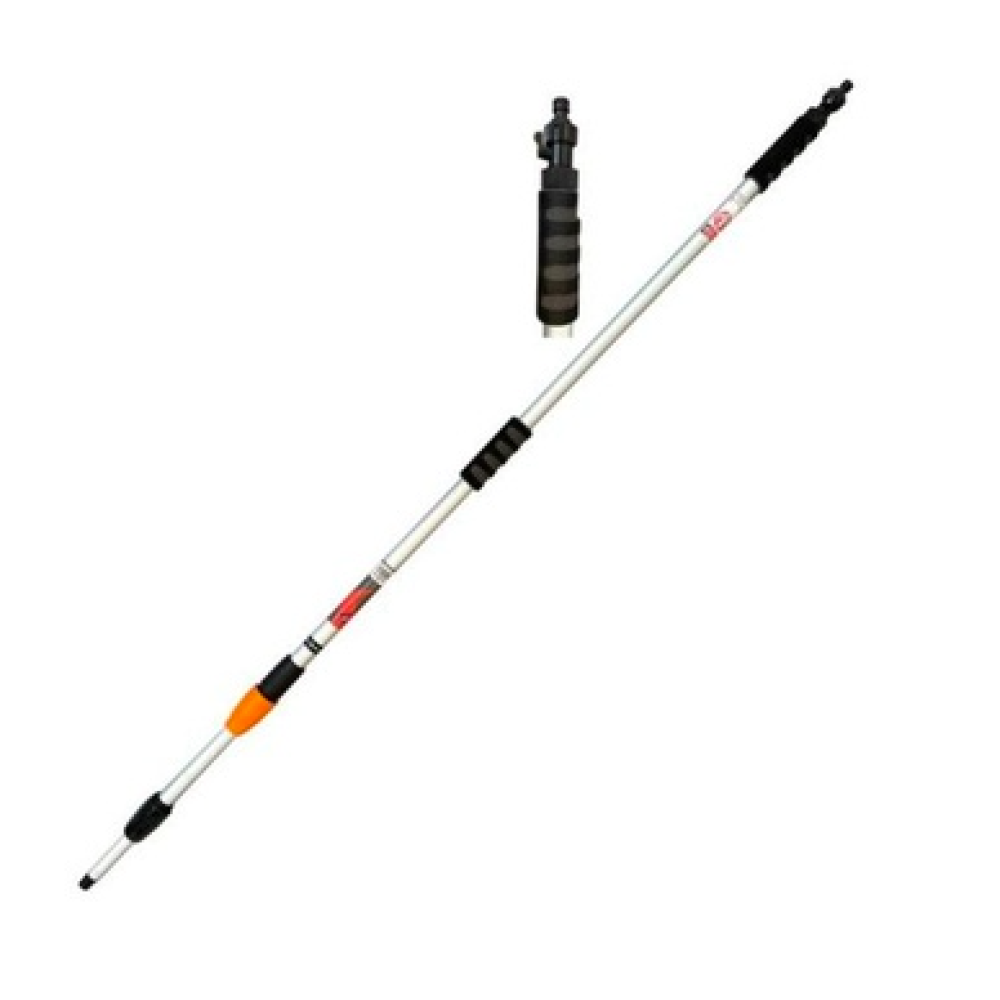 Door het gebruik van deze telescoopsteel met waterdoorvoer wordt het schoonmaken van uw ramen, zonnepanelen, veranda, dakgoten, vrachtwagen, mobilhome, auto,... een klus die snel geklaard zal zijn. Deze hydro steel is vervaardigd uit extra sterk aluminium dat ook erg licht is voor het ultieme gebruiksgemak. Onderaan de steel bevindt zich de Gardena compatibele adapter waarmee u ook de watertoevoer kan regelen. De Hydro telescoopsteel heeft bovenaan een metalen schroefdraad die extra sterk is en niet zal afbreken. Deze telescoopsteel kan je gebruiken met onze waterdoorlatende combi raamwissers, wasborstels,...