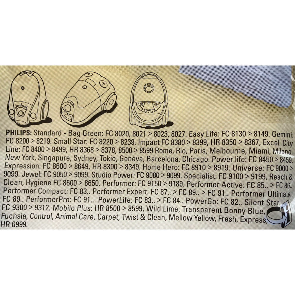 Stofzuigerzakken voor Philips type S-Bag.