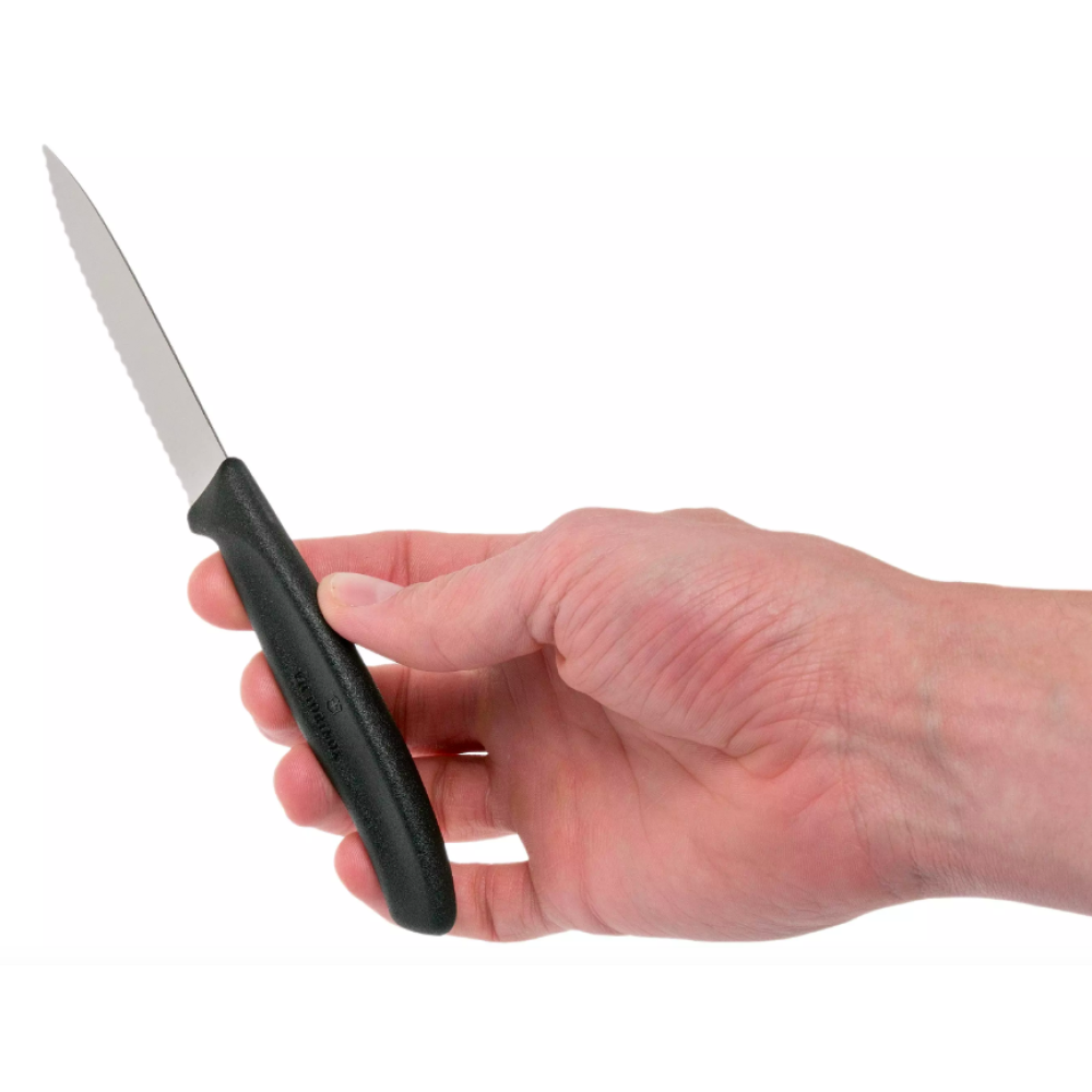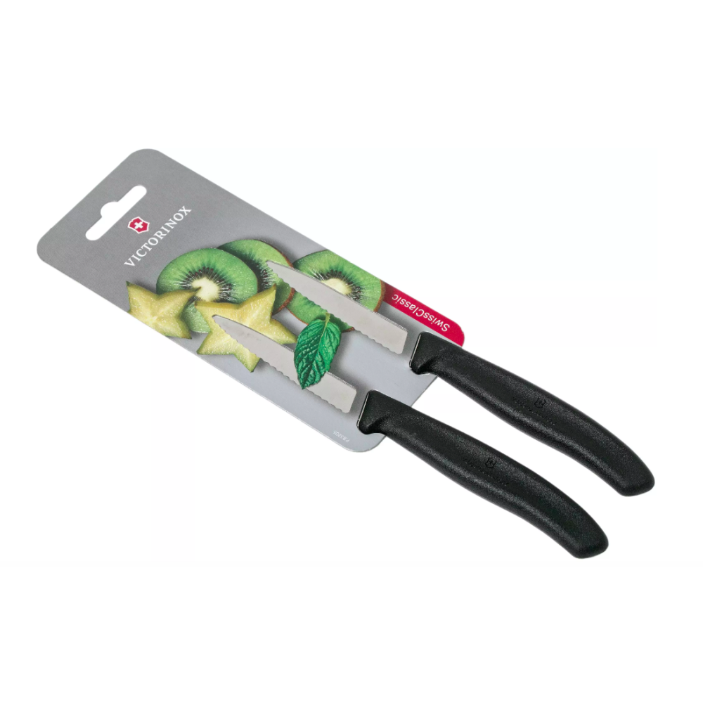 Deze twee Victorinox SwissClassic gekartelde groentemesjes zwart zijn veelzijdig inzetbaar in de keuken en op tafel. Door het kleine, dunne lemmet en de gekartelde snede is het snijden en schillen van groente, fruit of een klein broodje een eitje!